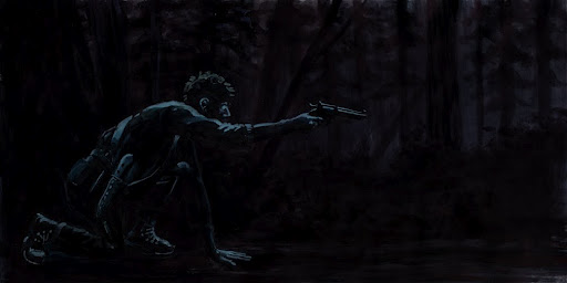 Dressed in funereal black, his hair is long and wild. He is staring at me, and beneath his uneven beard, his mouth moves. No sound escapes, not even the sibilant pops and clicks of lips and teeth. No breath.