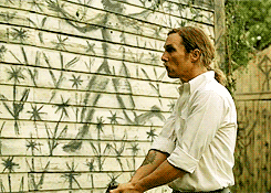 Rust is a bleak dude, for sure, but his cool and calm and nihilism, while coming from a logical place, are still a mask for his continuing loss. He justifies the fucked-up nature of the world by telling himself it’s meaningless and cold. But just like he checks his pulse each time he gets into a high-intensity situation, it’s a mask, one that requires effort to maintain. Just before Childress dies, what does he say to Rust? “Take off your mask.” (Itself a reference to the “King in Yellow“)